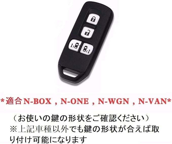 【適応車種】適合ホンダNシリーズ (4ボタン ) : 新型NBOX・NBOXカスタム・ N-BOX・N-BOX プラス・N-VAN(JJ1/JJ2)・Nワゴン・N-WGN・NWGN (JH1/JH2)・N-WGNカスタム (JH1/JH2)・N-ONE・NONE・Nワン (JG1/JG2)・N-BOX SLASH スラッシュ(JF1/JF2)・N-BOX / N-BOX カスタム(JF1/JF2)・N-BOX / N-BOX カスタム (JF1/JF2/JF3/JF4) ※ 年式により異なる場合がありますので、画像のキーの形状をご確認下さい。 画像のキーの形であれば適合です。【重要】購入前に必ず左の画像の鍵と一致いているかどうか確認してください。