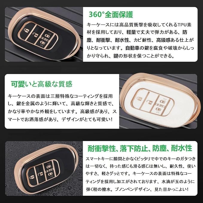 【360 全面保護】新型 ステップワゴンキーケースには高品質衝撃を吸収してくれるTPU素材を採用しており、軽量で丈夫で弾力がある、防塵、耐衝撃、耐水性、着地緩衝の効果があります。キーケースの表面は特殊なコーティングを採用し加工がされております、水滴が玉のように弾く程の撥水、自動車の鍵を腐食や破壊からしっかり守られ。360 全面保護、するため 落としてもキーに 傷がつくことはありません。
