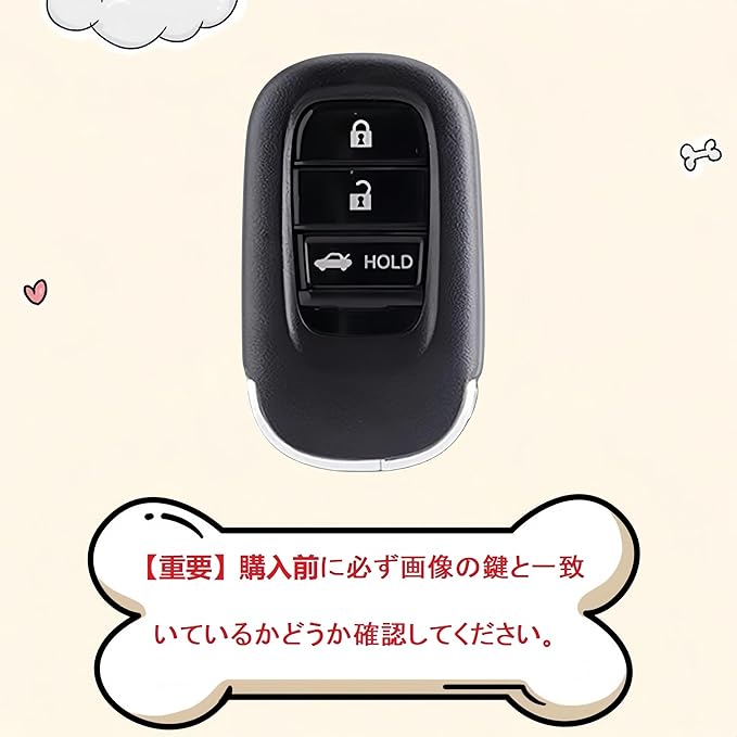 【適応車種】: (3ボタン)適合ホンダN-BOXカスタム JF5・JF6 NBOX Custom(年式:2023年10月~)、 N-BOX JF5・JF6(年式:2023年10月~)、 新型 ステップワゴン 、 ステップワゴン e:HEV スパーダ 、ステップワゴン スパーダ ガソリンモデル [STEPWGN RP6/7/8] (年式:2022年5月〜)、 新型 ヴェゼル ヴェゼルe:HEV VEZEL、 ヴェゼルRV系 E:HEV 型式:RV3 RV4 RV5 RV6 (年式:2021年4月〜) 、 新型 CIVIC シビック ハッチバック 型式:FL1 (年式:2021年8月〜) 、シビック タイプR (年式:2023年〜)、 CIVIC シビック e:HEV (年式:2023年〜)、ZR-V [ZRV] 型式:RZ1 / 2 / 3 / 4 / 5 / 6型 (年式:2023年4月~)。※ 年式により異なる場合がありますので、画像のキーの形状をご確認下さい。 画像のキーの形であれば適合です。【重要】購入前に必ず左の画像の鍵と一致いているかどうか確認してください。