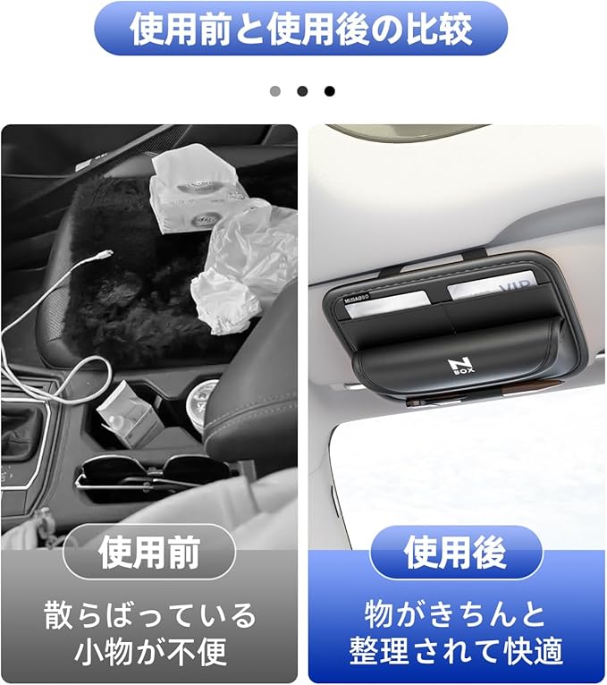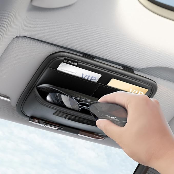 【多機能】車内の収納をもっとスマートに! サンシェード収納ポケットで、散らかりをスッキリ解消。カード、サングラス、ペン、クーポン券、コイン、ガソリンカード、USBケーブルなど、運転中に必要なアイテムをさっと取り出せる便利さ。ドライブがより快適になる収納ソリューションです。