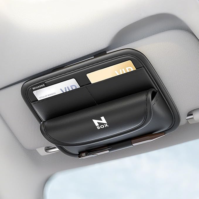エヌボックス N-BOX 専用 車 サングラスホルダー メガネホルダー サングラス掛け サンバイザー 車用 収納 車載カードホルダー サングラスケース 小物入れ 多機能 車内収納用品 ツおしゃれ カスタム アクセサリー 内装パーツ レザー 1個入り(ブラック) | KAZESHOP