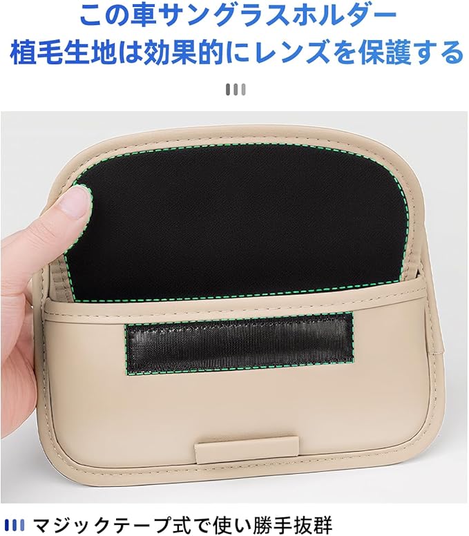 【高品質】この車 メガネホルダーは厳選されたナッパレザーを使用して作られており、おしゃれな色調で上質感がグットアップ!汚しても雑巾で簡単に拭き取り、なおかつデザイン性に優れた、柔らかく耐摩耗性にも優れています、環境に優しく、異臭もなく、エッジ部分の縫い目は精巧で丸みを帯びているため、手を傷める心配がありません、ファッショナブルなカーアクセサリーです。