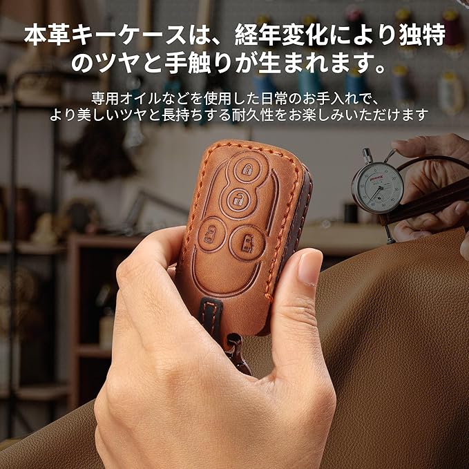 【匠の職人技】本革ならではの風合いが魅力。使い込むほどに革がなじみ、ツヤと滑らかさが増し、より味わい深い質感に変化していきます