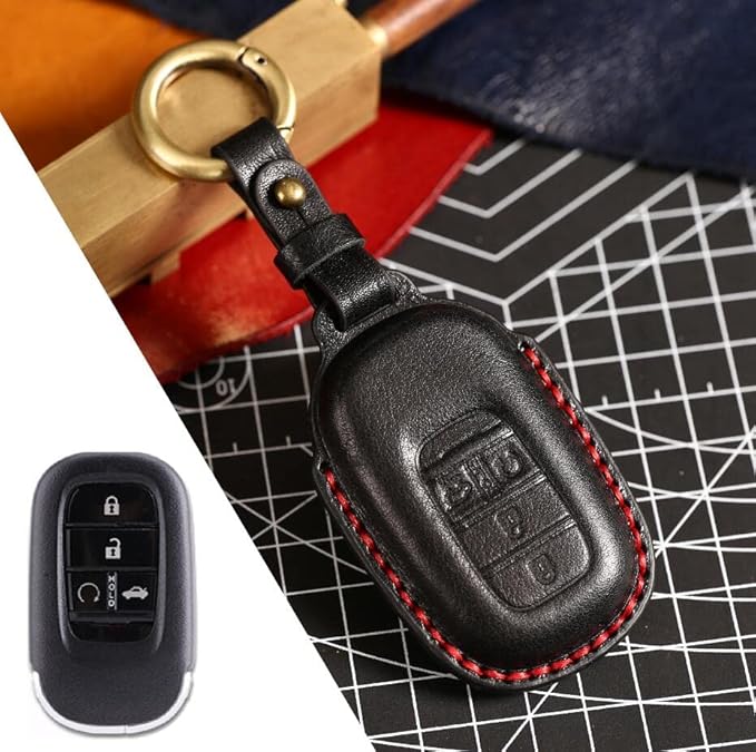 [Kinotaka] ホンダ車適合 ホンダ 新型 N-BOX NBOXカスタム 2023.10 発売 JF5 JF6 キーホルダー 4ボタン適用 本革製 キーケース (ブラック) | KAZESHOP