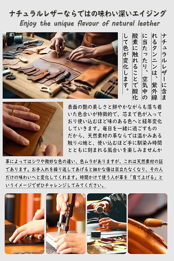 【上質な素材】厳選されたトップレイヤレザーを採用することにより、革の質感や色合い、手触りは微妙に異なり、使い方や時間経過によっても風合いが変わっていきます。使えば使うほどに艶感が増しエイジングを楽しめる高級のレザーで、手縫いの温かみとともに長らくお使いいただくに値した本革キーケースと言えます。全ての本革キーケースは革質により、手作業でエッジ部分を磨く時間と力をちょうとよく把握し、製品の表面をもっと艶出し、美しくなるだけでなく、キーケースももっと頑丈で、靭やかになります。キーリングは何度も改良され、より精巧でファッショナブルになっています。