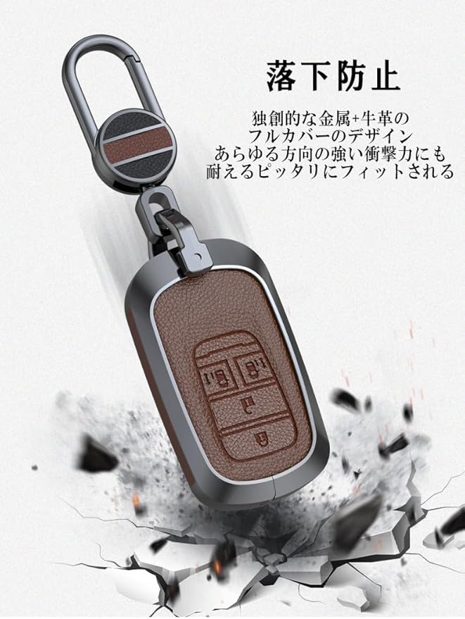 【上質の材料】このキーホルダーは亜鉛合金とレザーで作り、キーホルダーの取り付け方法は非常に簡単で迅速です。ラグジュアリーなデザインが設計されて、このケースを取り付ければ、ファッションセンスといい味出してる人が見られます。 型崩れしにくい素材なので愛車のキーを安心にお使うだけです。 キーケースは耐久耐摩擦だけでなく、防塵性、落下防止でスマートキーをマルチアングルで守ります。