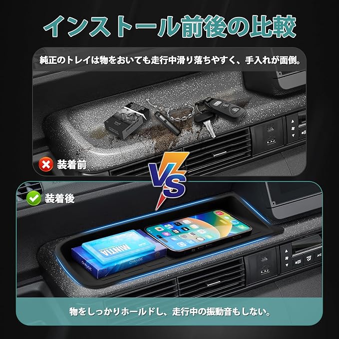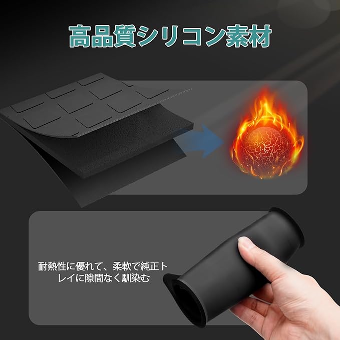 2.【素材&騒音防止】:耐熱性、耐衝撃性、耐磨耗性に優れたシリコンゴムを採用し、車の振動を吸収し、運転中で助手席トレイの小物の滑りによる騒音を減らす。