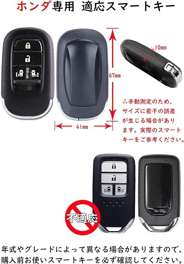 【適応車種】ホンダ用 新型N-BOX(2023~) N-BOXカスタム(Custom)(2023~) JF5・JF6;新型アコード(2023〜);新型フリード;ヴェゼル(2021〜) ヴェゼルe:HEV、ヴェゼルRV系E:HEV型式:RV3/RV4/RV5/RV6 ヴェゼル WR-V;シビック(2021〜) シビック ハッチバック型式:FL1(2021.8~)/タイプR(2023~)、シビックe:HEV(2023〜);新型ステップワゴン ステップワゴンe:HEV スパーダ/ステップワゴン スパーダ ガソリンモデル[RP6/7/8](2022〜);新型CIVIC(シビック) シビック ハッチバック型式:FL1 (2021〜)/シビック タイプR;ZR-V [ZRV] 型式:RZ1/2/3/4/5/6型(2023.~);オデッセイ(2023~) WRV;新型フリード GT型などに適合します。ガソリン車、e:HEVどちらも適合可能です。⁂グレードや年式によって適合しない場合があります。お使いのキーを必ず確認ください。ご商品がキーと合わない場合はカスタマーサービスにご連絡ください!