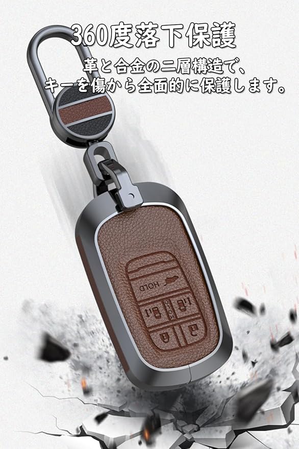 [ontto] ホンダ用 キーケース キーカバー キーホルダー レザー アルミ合金 レザー 革 新型 N-BOXカスタム フリード ステップワゴン RP ヴェゼル シビック等に適応 アクセサリー オシャレ 傷防止 落ちにく | KAZESHOP
