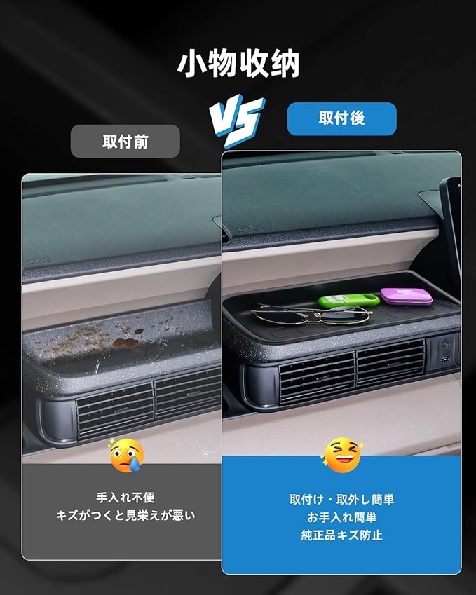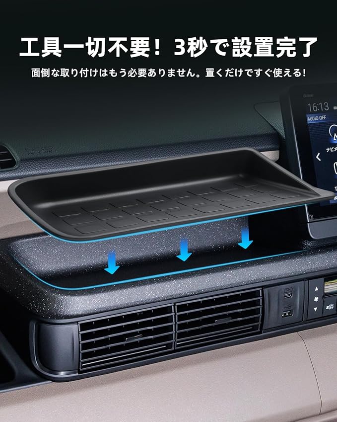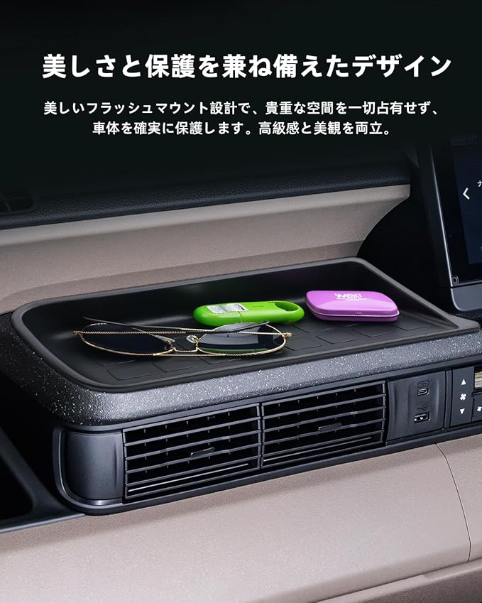 【取り付けが簡単】ホンダ N-BOX 3代目 トレイ寸法は入念な実車計測を行い、 工具や穴あけ不要で、差し込むだけで簡単に装着でき、完璧にフィットします。スタイルを崩すことなく愛車をデコレーション。