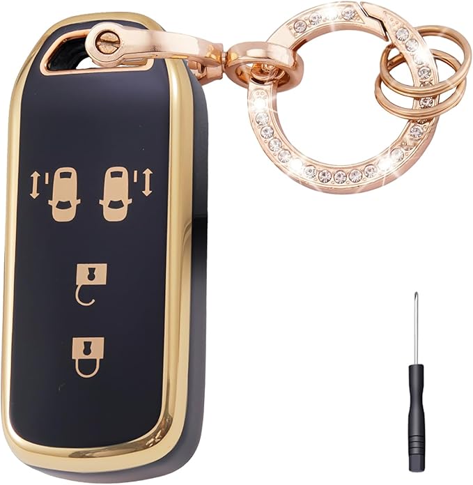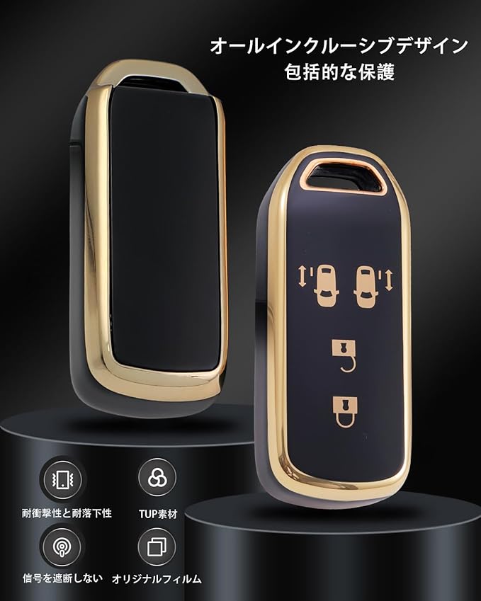 智能デザインと信号無障害:原車のキーに基づいて慎重に設計され、全てのボタンが完璧にフィットし、キーの信号が遮断されることなく、スムーズなリモート操作を保証します。安心してご使用いただけます!このキーケース、上質なゴールドエッジのデザインが高級感とファッション感を演出し、原車のキーの機能性と美観を完璧に保持します。