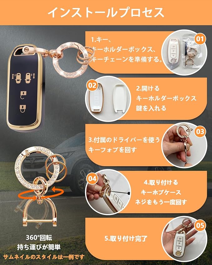 パッケージ内容:パッケージには、TPU N-box キーカバー 1個、輝くカーキーホルダー 1個、小型キーリング 2個、そして取り付けに便利なドライバーが含まれています。日常の使用をより便利かつスタイリッシュにします。