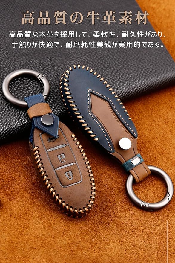 高級感:この日産 スマートキーケース は上質で手触りの良い本革素材を使用したスマートキーケースです。豪華さを演出してくれます。本キーケースを取り付けるだけで愛車のスマートキーは高級車のキーに様変わりします。