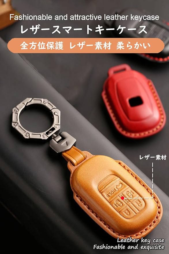[ontto] ホンダ用 スマート キーケース キーカバー キーホルダー 革 オデッセイ ステップワゴン RP6 RP7 RP8 エリシオン オデッセイ ヴェゼル シビック N-BOX 2023-2025などに適応 傷防止 車用品 落ちにく レザー素材 | KAZESHOP
