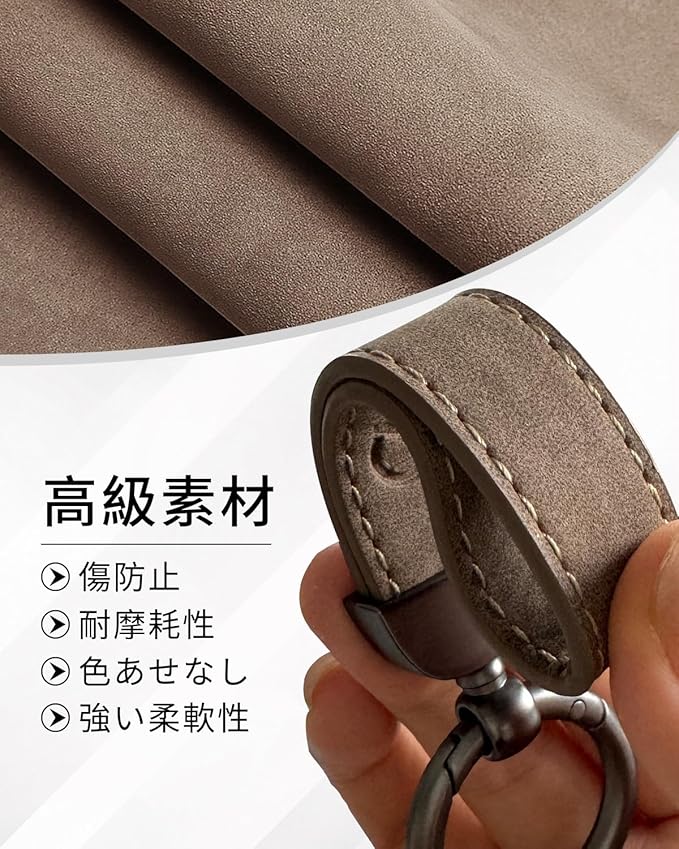 【耐摩耗性に優れた実用的設計】 表面素材には特殊コーティングを施し、キー同士の接触やポケット内での摩擦による傷からしっかり保護。長期間使用しても見た目の劣化が少ないのが特長です。内側にはクッション性のある素材を使用しており、キーへの衝撃を和らげます。カラビナの開閉部分はスムーズな動きを追求し、片手でも簡単に操作可能。車生活を快適にするための細かい配慮が随所に詰まっています。特に毎日キーを使い込む方におすすめの機能性です。