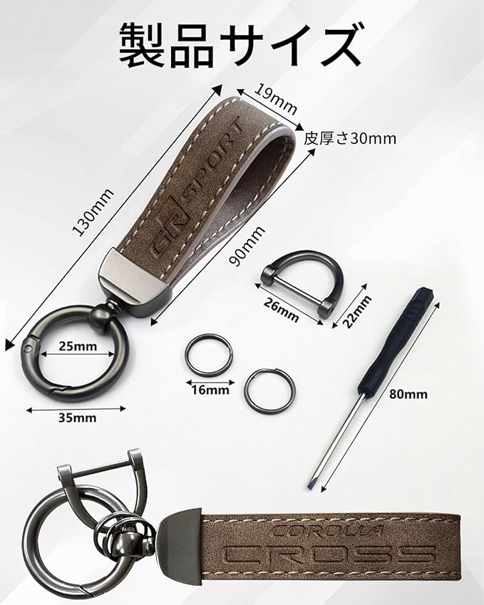 [SYAKAORI] キーホルダー 車 専用ロゴ キーリング 革 鍵 紛失防止 キーチェーン 防錆 耐久性 カラビナ ストラップ 手触りいい シンプル おしゃれ 男女兼用 カーアクセサ | KAZESHOP