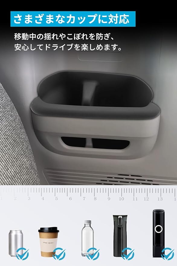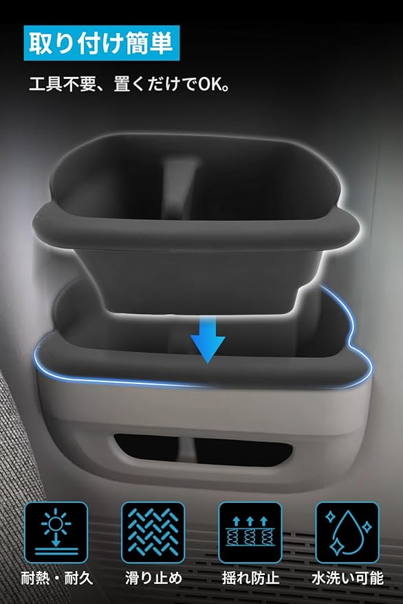 ● 【滑り止め&防音設計で快適ドライブ】:底面に施された防滑パターンが、置いたドリンクや小物のズレを防止。走行中の振動や揺れによるガタつき音を軽減し、静かで心地よい車内空間を実現します。また、しっかりフィットする設計で、取り付け後も違和感なく快適に使用できます。