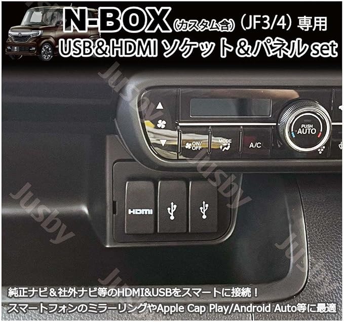 ホンダ N-BOX JF3 JF4 用 純正&社外ナビ USB&HDMI用 ソケット&ブラックパネル&ケーブルSET HONDA用 NBOX カーナビとミラーリング HDMI USBポート(USB&HDMIタイプ(ブラックパネル)) | KAZESHOP
