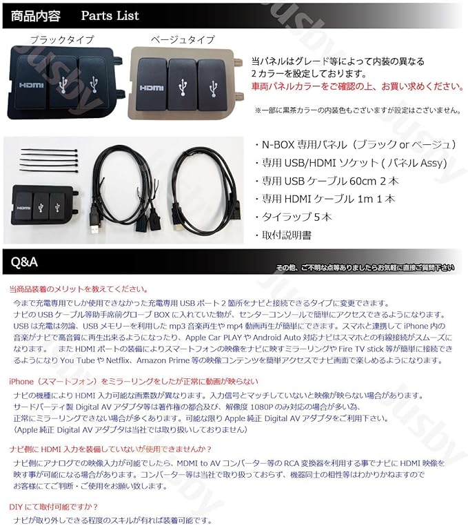 パネルやアダプタ含め全て当社オリジナル商品となります。純正ルックにHDMIポートを追加できるだけで なく今まで充電専用だったUSB 2部分がナビ と接続可能なUSBに変更できます。今まで助手席前グローブBOX等にいれていた、 HDMIやUSBケーブルがスマートにアクセス できる様になります。