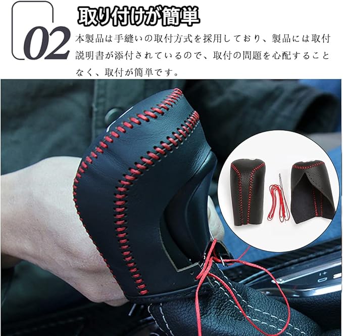 ✔【高級感】:黒+赤ステッチのような凹凸感を出し高級感を醸し出します、シフトノブより目立たせるためのガイドを作成します、スポーティに演出します;使用頻度高いシフトノブに爪などによる傷をもっと防止できます、シフトノブを守ることができます、細部まで上級仕様を実感できます;針糸縫いで取り付けると、取り付けがより強固になります