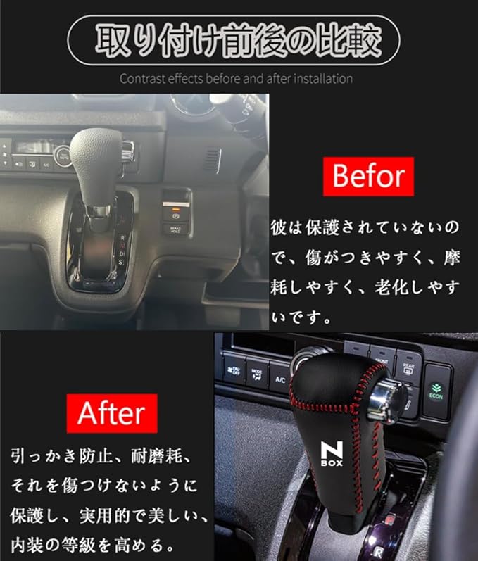 ★使用頻度高いシフトノブに爪などによる傷をもっと防止できます、シフトノブを守ることができます、細部まで上級仕様を実感できます。