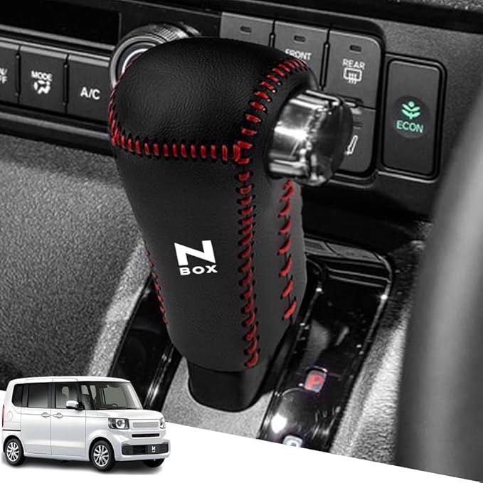 ホンダ 新型N-BOX nbox JF5 JF6 JF5、6系(2023年10月~) 新型N-BOXカスタム 新型N-BOXジョイ専用本革材質シフトノブカバー 内装カスタムパーツ アクセサリー爪キズ防止 取り付け簡単 車種専用設計(黒(赤ステッチ)) | KAZESHOP