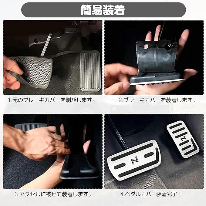 PONMOKEN【2025 ホンダ N-BOX Nシリーズ ペダルカバー JF3 JF4 JF5 JF6 N-WGN N-ONE N-VAN 通用 滑り止め付き 工具不要1分取付 雨の日安全強化 アルミ+ゴム一体成型 全車種対応 安全運転重視者推奨 2点セット | KAZESHOP