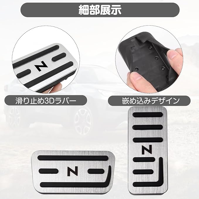 【 雨の日も安心】アルミ+ゴム一体成型 滑り止め機能最大化 滑り止めペダルカバーの核心は「アルミ合金+厳選ゴム」の一体成型設計!中央の黒ゴム縞は靴との摩擦を2倍増加,雨の日の水はけも優れ、足元の滑りを根絶!人体工学に基づいた形状で、長時間運転でも違和感なく、まるで純正ペダルのような装着感で安全運転をサポート。