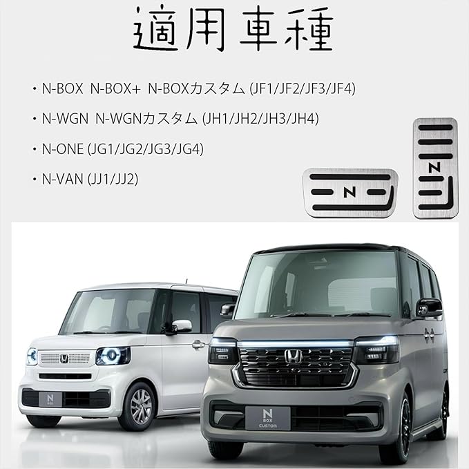 【✓全Nシリーズ対応】ホンダ専用フィット性 複数型式完美対応 本製品はnbox専用アクセサリーとして、ホンダNシリーズ全車種——N-BOX(JF1/JF2/JF3/JF4)、N-WGN(JF1/JF2/JF3/JF4)、N-VAN(JJ1/JJ2)、N-ONE(JG1/JG2/JG3/JG4)、N-BOX SLASH(JF1/JF2)まで幅広く対応!他社製品より多くの型式(如n-box jf5/nbox jf3)に適合し、純正ペダルとのフィット感が抜群。必ずご愛車の型式(JF番号等)を確認の上、お買い求めください(写真参照推奨)。
