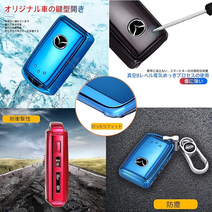 【高質なTPU材料】新型なキーケースは優質なTPU材料を使用して作られる。特性は材質が柔らかくて耐久性がいいことである。車の元のキーモデルを使って金型を設計したので、隙間が生じないほどキーとぴったり合える。防塵防水、スクラッチ防止、耐衝撃などの特性があり、お客様が日常にカーキーを利用する欠かせないデコレーションでもある。