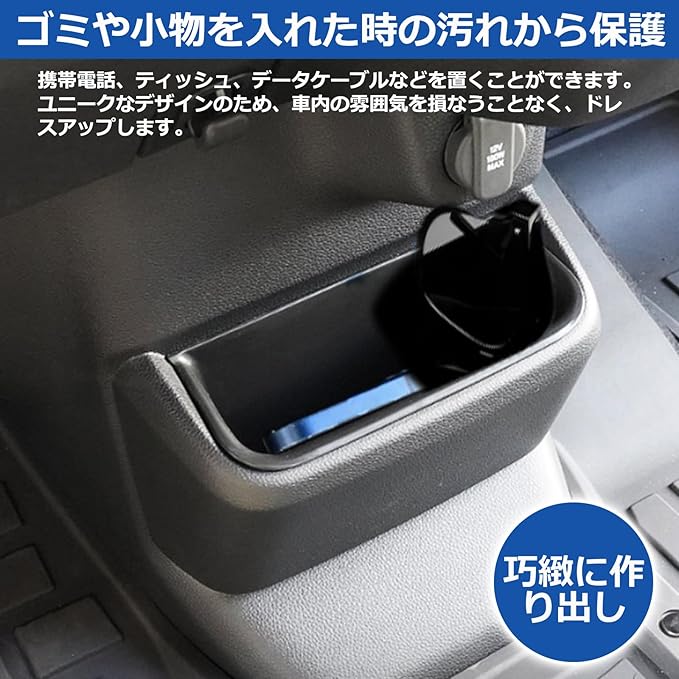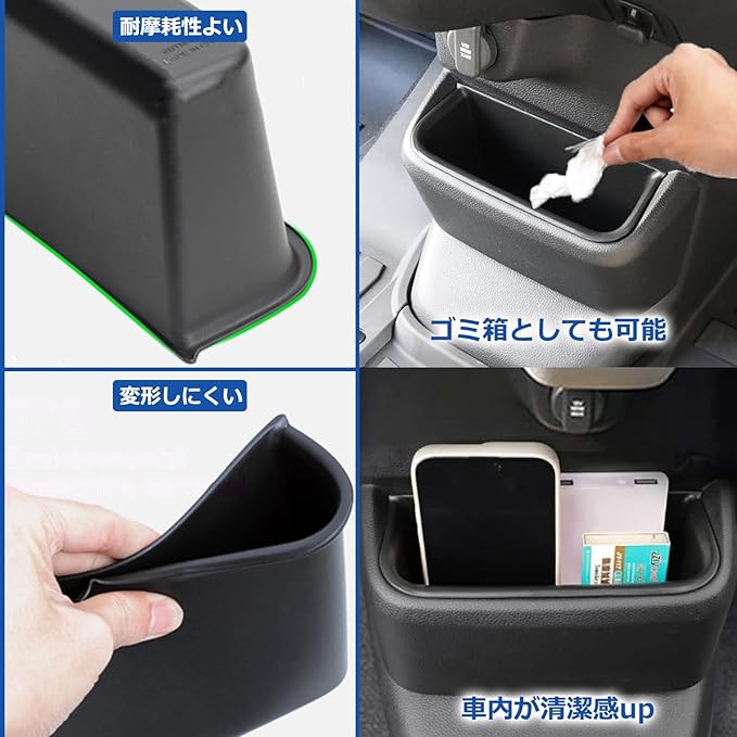 【収納アップ】:本トレイはタバコ、駐車券、スマホ、カード、コイン、メガネ、クレジットカードや鍵など、小物関係の収納には最高です。スペースを有効活用して、様々な小物を綺麗に収納するスペースを提供し、ゴミ箱としても清潔感upな車内環境を作ってくれます。