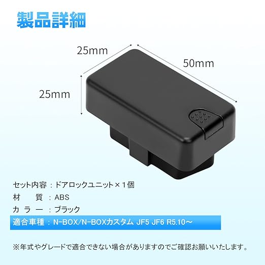 【適合車種】:N-BOX/N-BOXカスタム JF5 JF6 R5.10~。※年式やグレードで適合できない場合がありますのでご確認お願いいたします。衝撃感知ドアロック解除システムは新型N-BOXにもともと装備されているシステムなので、本製品を取り付けても、そのシステムの作動に影響しておりません。
