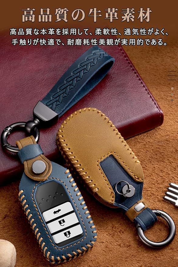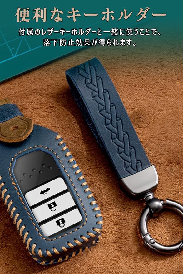 高級素材:このホンダ キーケースは上質で手触りの良い本革素材を使用したスマートキーケースです。レザー素材に太いステッチを施し、耐久性が良く、クールでおしゃれなキーケースとなっております。豪華さを演出してくれます。本キーケースを取り付けるだけで愛車のスマートキーは高級車のキーに様変わりします。