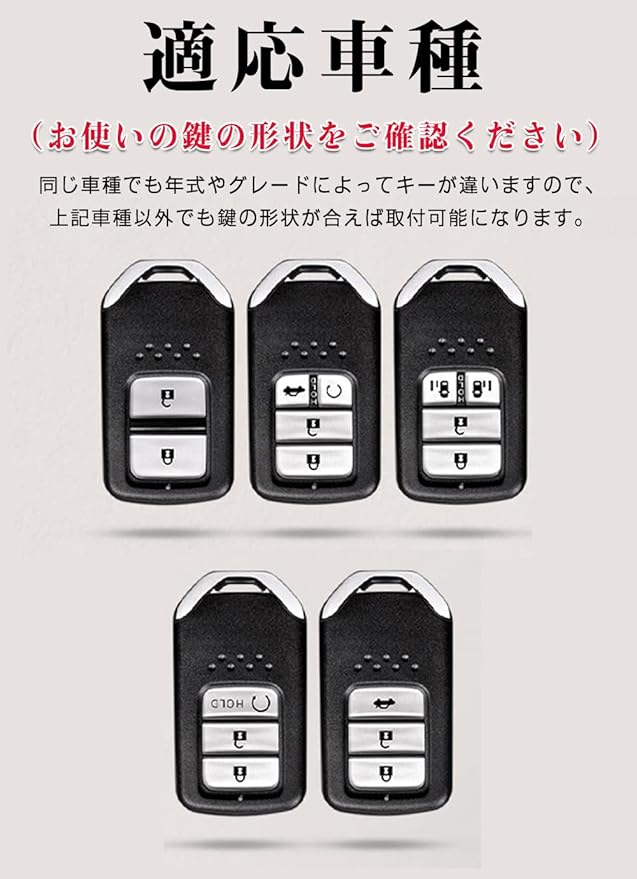 適応車種:ホンダ (HONDA)新型フリード フリード+ ハイブリット・ガソリン / 新型オデッセイ ハイブリット・ガソリン 2013.11~/ ステップワゴン スパーダ e:HEV・ガソリン RP1 RP2 RP3 RP4 / 新型フィット 2013.9~ / S660 / CR-Z 2016年~/ ヴェゼル 2014年~ / CR-V ハイブリット・ガソリン 2019年~/ JADE ジェイド / シャトル ハイブリット・ガソリン / シビック セダン / ハッチバック / タイプR 2015年~/ アコード PHEV・ハイブリット / インサイト 2019年~/ グレイス GM4 / GM5 ハイブリット・ガソリン2014年~/ クラリティ FUEL CELL / PHEV/typeR/RC1/RC2およびその他のモデル(お使いの鍵の形状をご確認ください)※上記車種以外でも鍵の形状が合えば取り付け可能になります。