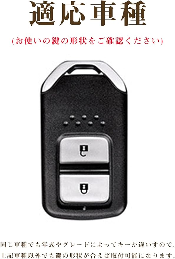 適応車種:ホンダ Honda ヴェゼル/新型フリード ハイブリッド/フリード+/新型フィット/ヴェゼル/新型ステップワゴン RP1/RP2/ステップワゴンスパーダ RP3/RP4/シャトル/シャトルハイブリッド/ジェイド/S660/新型フィット(2020年2月~) /新型フィットハイブリッド(2020年2月~)/フィット/フィットハイブリッド/フリード/ヴェゼル フィット/CR-Z/シビック/typeR//オデッセイ/RC1/RC2/VEZEL ハイブリット(X/X・Lパッケージ/Z) ガゾリン車(G/X/S)など。およびその他のモデル(お使いの鍵の形状をご確認ください)※上記車種以外でも鍵の形状が合えば取り付け可能になります。