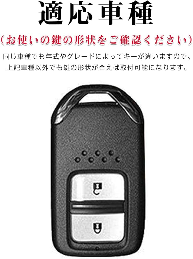 適応車種:Honda 新型フィット(2020年2月~) / 新型フィットハイブリッド(2020年2月~) / フィット/フィットハイブリッド/フリード/シャトル/シャトルハイブリッド/ヴェゼル/ジェイド / S660 / など 専用設計でピッタリサイズ。およびその他のモデル(お使いの鍵の形状をご確認ください)※上記車種以外でも鍵の形状が合えば取り付け可能になります。