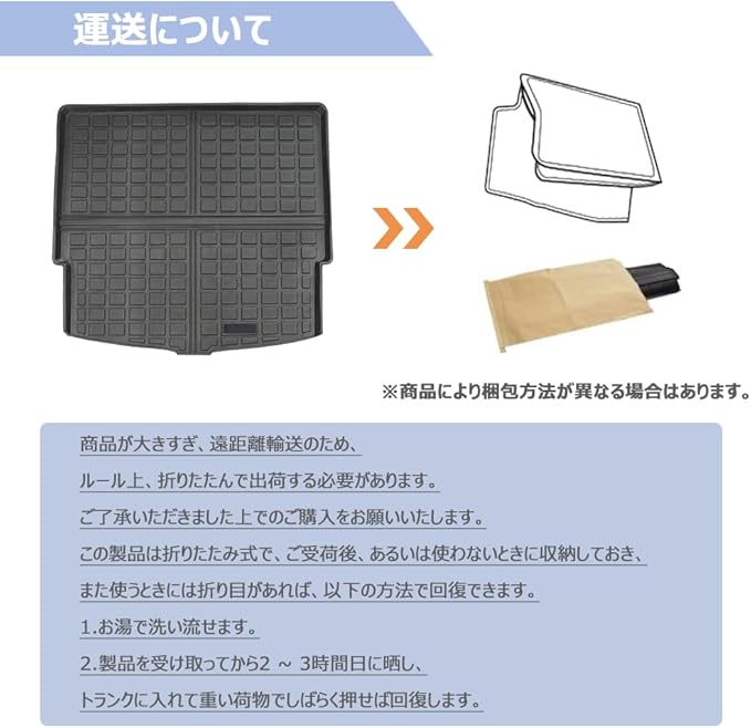 【折り畳み式・取付簡単・収納可能】弊社のラゲッジマットは操作簡単で、初心者でも簡単に取り付けできます。折り畳み式で、ご受荷後、あるいは収納して起き、また使うときに折り目があれば、しばらく回復できます。