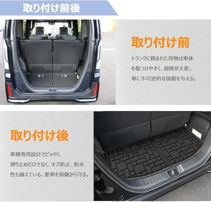 【KASUART】車用ラゲッジマット 折りたたみ式 ホンダ N-BOX/N-BOXカスタム JF5/6型 3代目 (2023年10月~現行) エヌボックス CUSTOM 車種専用設計 トランク マット ラゲッジカバー 防水 傷防止 滑り防止 水洗い 折り目なし 折り畳み式 簡単収納 内装パーツ 取付簡単 | KAZESHOP