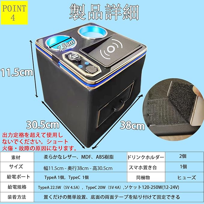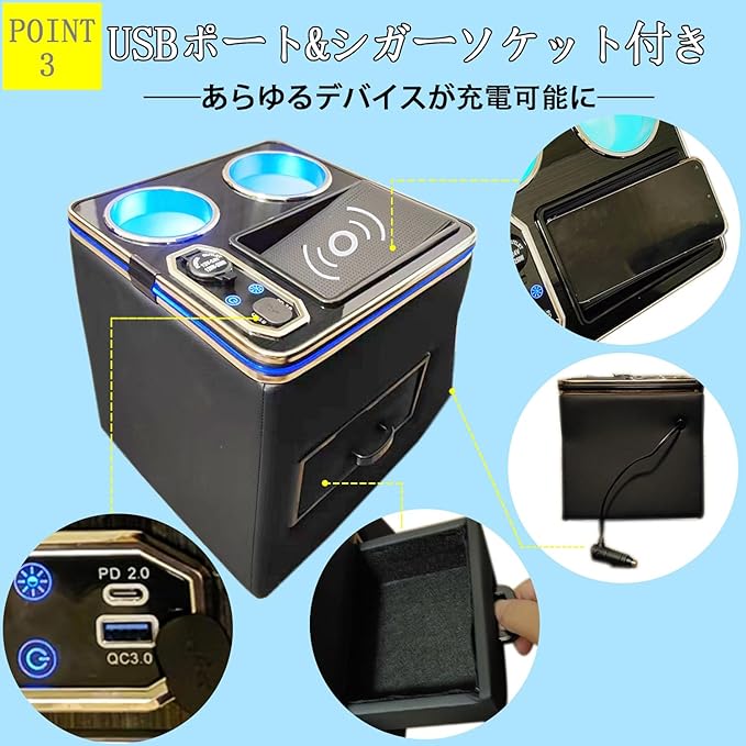 【機能性がアップ】:エヌボックス コンソールボックスは電源ソケット、Type-CとType-A、シガーソケット、LEDスイッチなどのコントローラーが配置されています。ドリンクホルダーはもちろん、引き出しに財布、鍵、コイン、カード、データケーブルなどををスッキリ整理でき、車内をキレイに!新型nbox JF5/JF6の限られた車内空間を十分に利用できます!隙間にもピッタリ収まり、小物が散ばることが無くなります!