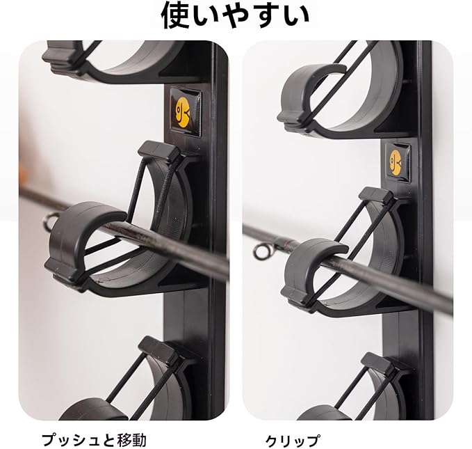 使いやすさ: 釣竿の出し入れがスムーズで、整理整頓が簡単にできる実用的なデザイン
