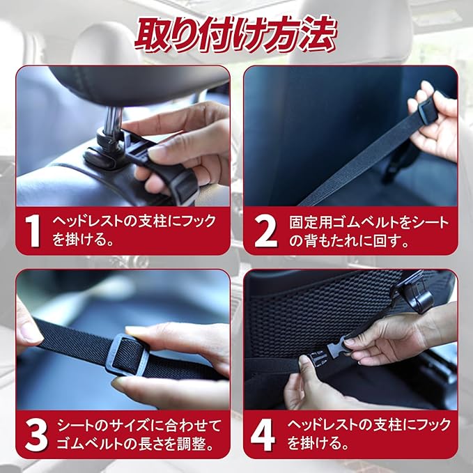 【対応車種】お客様の車のヘッドレストに棒さえあれば、前部・後部を問わず、どのシートにも簡単に設置できます。ご不明なところがありましたら、いつでもご気軽にお問い合わせください。