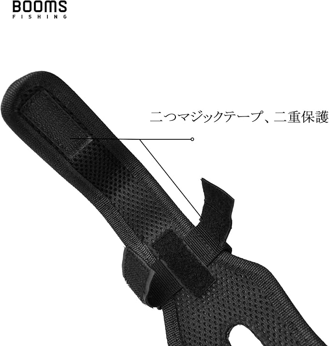 リールに合わせる溝、ロッドを固定するマジックテープ、両手が自由になります