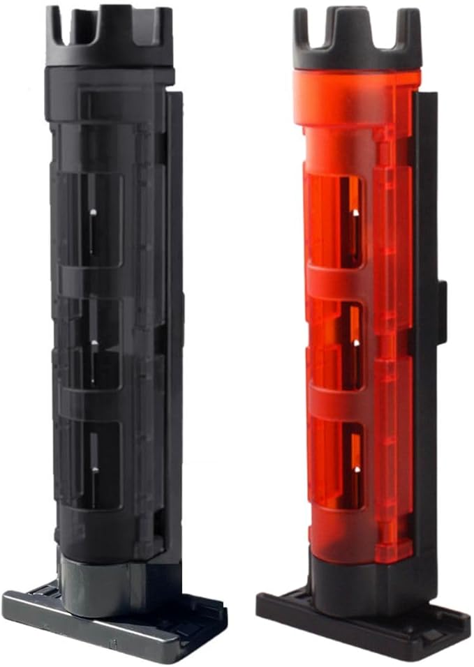 【機能性】ぐらぐらしないリニューアル版の汎用性のあるロッドスタンド2本セット。各種の釣竿やタックルボックスに対応している釣り竿のスタンド。2個セットで釣り道具として便利に使えます。ロッドフォルダーの高さは3段階に調整可能な釣りざおケースです。 【耐久性】材質はポリカーボネートで、軽い素材でありつつ強度も備えています。水がかかっても大丈夫な事はもちろん、水洗OK、汚れにも強い、お手入れ・掃除も着脱も簡単。さまざまな環境の釣り場で役に立つ釣竿スタンドです。 【装着性】差し込み式で、器具不要、簡単に装着できます。タックルボックスにスタンドを差し込んで釣竿を差し込むだけ、釣り初心だでも簡単セットアップができます。 【仕様】2本セット。高さ約28㎝から40cmまで3段階調整、内径約3.7cm。1本の重さ約230g。カラーバリエーションはブラック、レッド、ブルー、グリーン。 【利用シーン】海釣り、磯釣り、川釣り、堤防釣り、渓流釣り、船釣りなど、さまざまなシーンで活用できます。快適な釣りライフをお楽しみください。