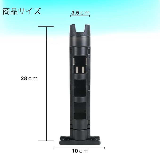 【便利な2個セット】ロットスタンド(2個セット) カラー:ブラック レッド 商品サイズ:縦28cm スタンド穴径3.5cm 台座の長さ10cm 重さ1個200g 【丈夫なタックルボックス用ロッドスタンド】タックルボックスに取付られるロッドスタンドです。防波堤釣り、サーフ釣り、船釣り等でタックルボックスにロッドを立てて収納できるので釣り最中の身の回りの整理整頓と足元の安全確保に役立ちます。これ一つで手持ちの釣り具をスマートに収納し、釣り場での準備や片付けの手間を省きます。また頑丈なABSプラスチック素材を採用し、水や錆びに強いので、厳しい釣り環境にも耐えられます。長期間にわたって安心して使える品質を保証します。 【 コンパクトで実用的なデザイン】スペースを取らないコンパクトサイズで、持ち運びも収納も簡単。シンプルかつ実用的なデザインが、限られたスペースを最大限に活用します。 【簡単装着】差し込み式になっていますので特別な工具や複雑な手順は不要です。誰でも簡単にタックルボックスに装着して頂けます。 【高さと台座位置は3段階調節可能】ロッドホルダーの高さは3段階(28cm・34cm・40cm)に調整できます。釣り竿のサイズに合わせて自由に調節できます。また横転を防ぐための台座の位置も3段階(左・中央・右)に調整できます。