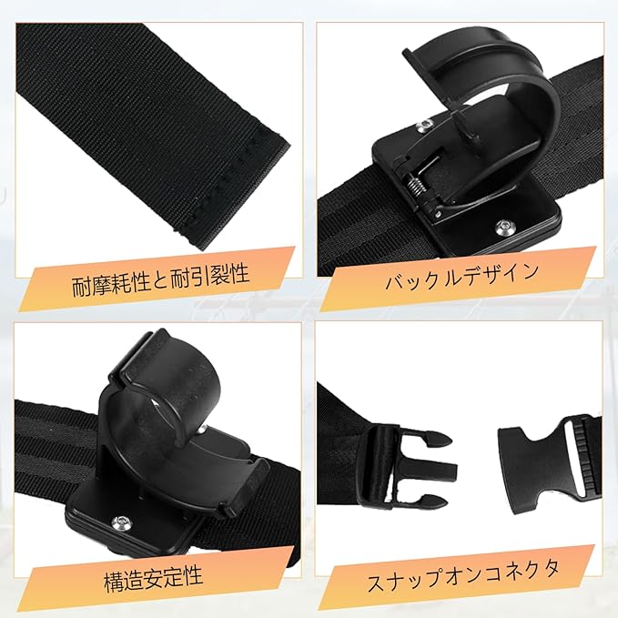 【製品のメリット】この車載釣り竿ホルダーの大きなメリットは、車のシートベルトと同じ素材で作られた2本の高強度伸縮性ストラップと12個の専用クリップを使用していることです。この独自の設計により、最大6本の釣り竿、または複数のロッドを組み合わせて車内にしっかりと固定し、凹凸のある場所でも安定性を確保します。伸縮式ロッド2本、フロントマウントロッドクリップ6個、2セクションロッドクリップ2個、シングルセクションロッドクリップ4個が含まれています。