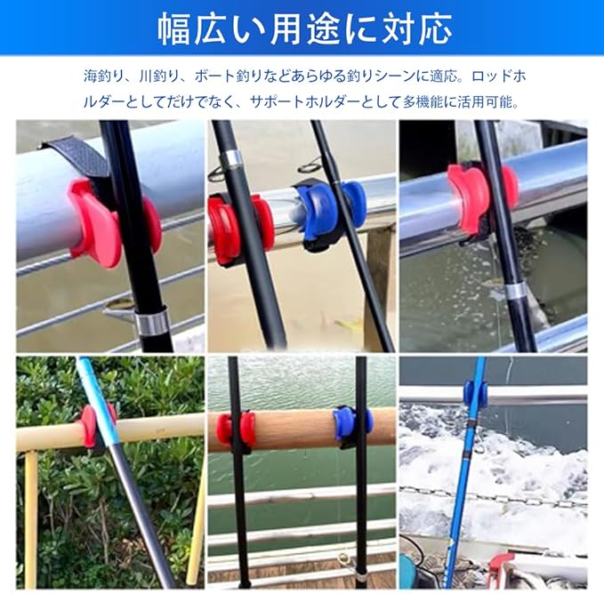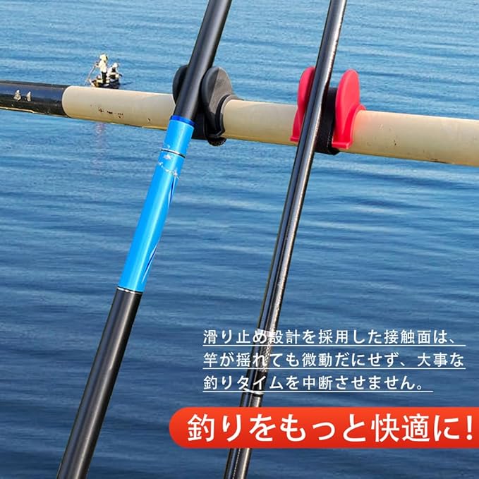 1. 面ファスナーーベルトで簡単設置 どんな場所でも面ファスナーーベルトでしっかり固定可能。釣り場でのセッティングがスムーズで、時間を節約できます。 2. 滑り止め設計で安定サポート 特殊素材を使用した滑り止め加工で、釣り竿をしっかりホールド。強い引きにも耐え、安定したフィッシングをサポートします。 3. 高い耐久性で長持ち 耐水性・耐候性に優れた素材を使用しているため、海水や紫外線にも強く、長期間使用可能です。 4. 幅広い用途に対応 船釣り、防波堤、サーサーフなど、さまざまな釣りシーンで活用可能。ロッドの太さや種類を選ばず使用できます。 5. 軽量で持ち運び便利 コンコンパクトで軽量な設計のため、釣り道具と一緒に気軽に持ち運べます。
