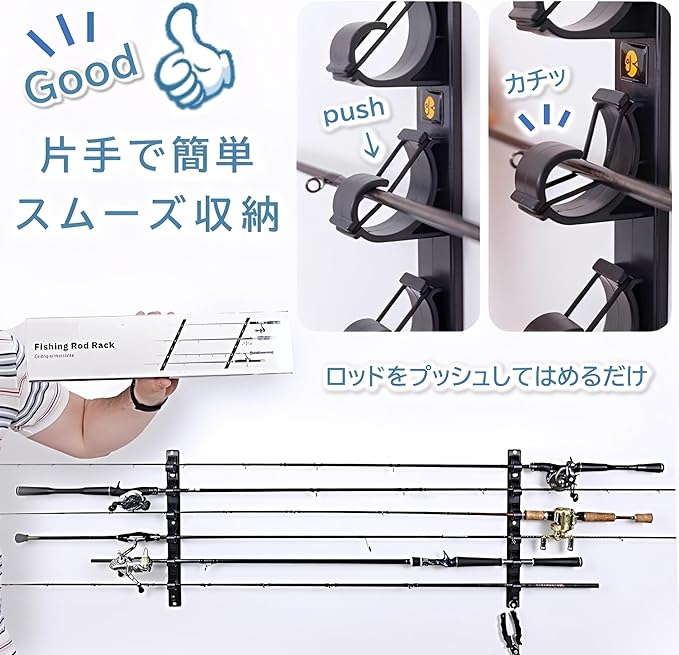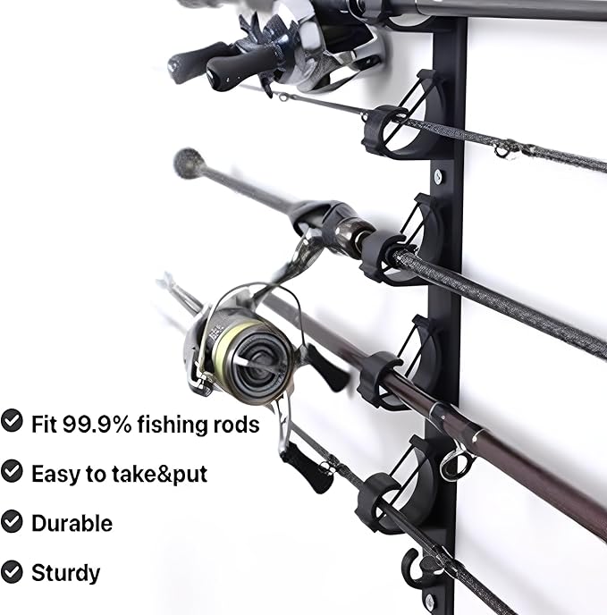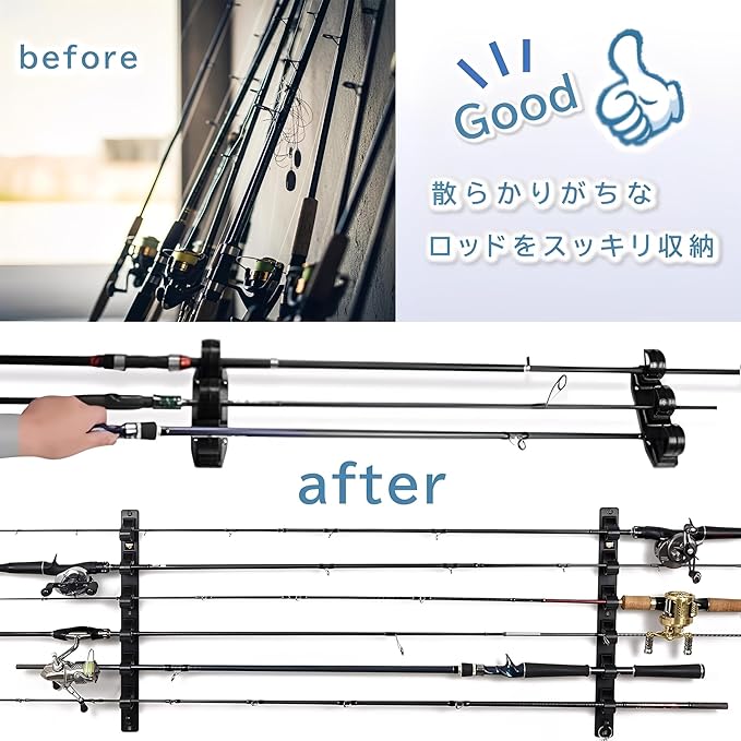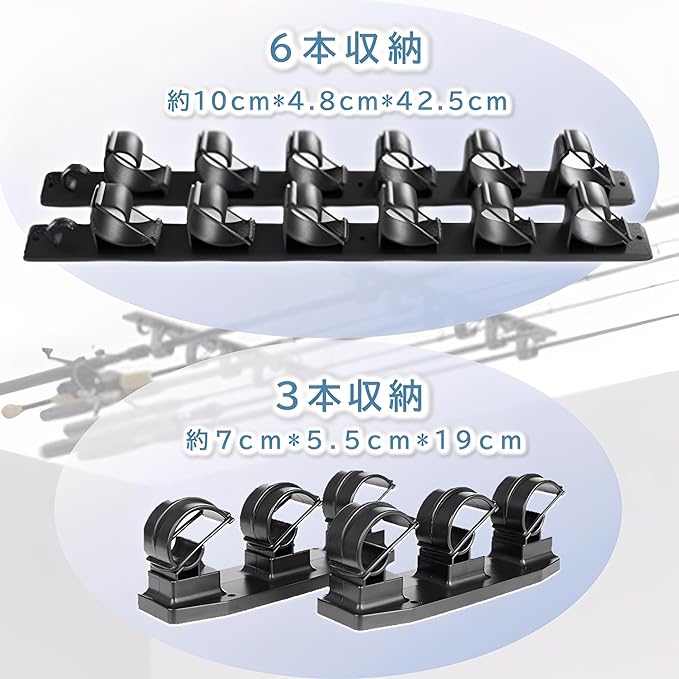 設置場所の自由度が高い:最大3本または6本の釣り竿を収納でき、壁や天井だけでなく、ガレージ、ボート、トラックデッキ、トラックの荷台など、釣りスタイルに合わせて自由に設置でき、様々な場所に設置可能です。