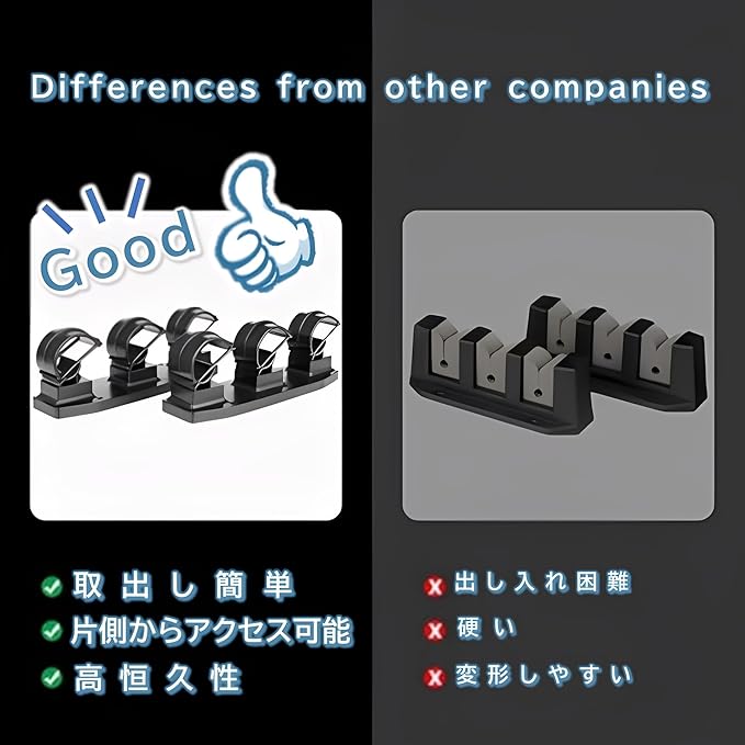 クリップ式 多機能フィッシングロッドホルダー:壁掛け・デッキ設置対応で、大切な釣り竿をしっかり保護 設置場所の自由度が高い:最大3本または6本の釣り竿を収納でき、壁や天井だけでなく、ガレージ、ボート、トラックデッキ、トラックの荷台など、釣りスタイルに合わせて自由に設置でき、様々な場所に設置可能です。 簡単な出し入れ、片手操作: 独自の設計により、釣り竿のハンドル側から片手で簡単にロッドを出し入れできます。手間取ることなく、スムーズに準備や片付けが行えます。 確かなホールド力と振動からの保護: ロッドをプッシュして動かすだけで簡単スムーズに収納でき、クリップでしっかりと固定します。付属のOリングを併用することで、振動からロッドをしっかりとキープし、大切な釣り竿の安定性を高めます。 あらゆる環境に対応する耐久性: Oリングは特殊ゴム製で、屋外でも高い耐久性を誇ります。晴れ、雷雨、強風、雨、雪など、あらゆる天候条件下での使用に適しています。 硬く、出し入れが困難で、変形しやすいといった問題を解決し、簡単に出し入れでき、片手で操作可能、そして頑丈なホールド力を提供します。 釣り竿の整理整頓と保護に最適な、機能性と耐久性を兼ね備えたこのロッドホルダーをぜひお試しください。 対応ロッド径:直径2cmまでの釣り竿を収納可能。 商品サイズ 3本収納 約7*5.5*19cm 6本収納 約10*4.8*42.5cm
