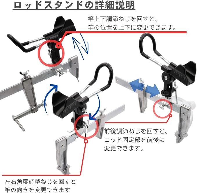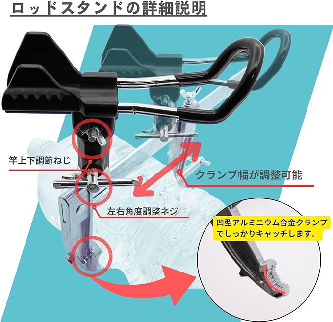 【選べる2サイズ】クランプ固定幅23cmと30cmの2サイズをご用意!手すりや堤防の車止めなどに固定する場合は23cm、それ以外にも幅広く使用したい場合の30cmなど自身の釣りスタイルに合わせてお選びください。投げ釣りやサビキ釣り、カゴ釣りなど多くの場面でご使用いただけます。