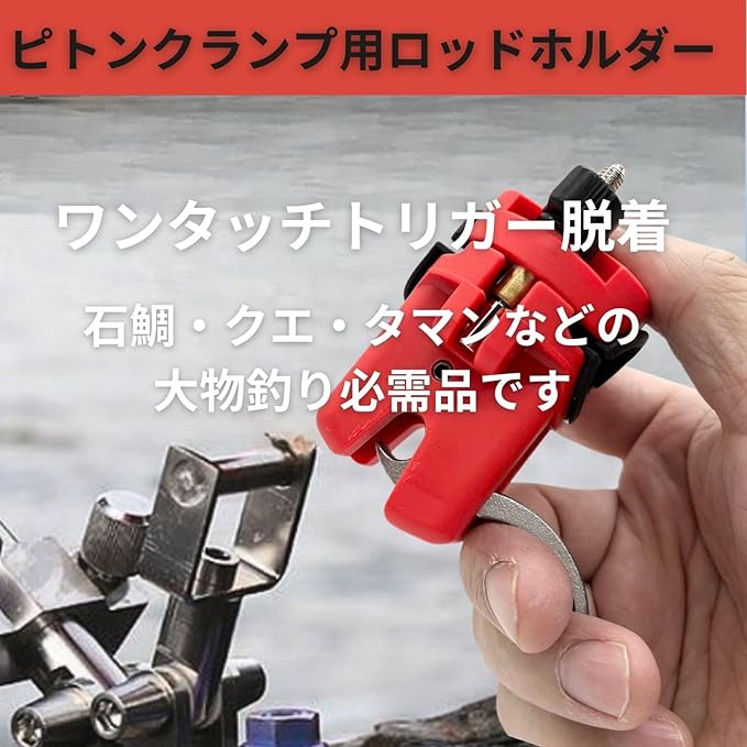 【ワンタッチトリガー着脱式ピトンクランプセット】 このピトンクランプセットは、ワンタッチトリガー方式で簡単に着脱できるロッドクランプです グリップ部分にはラバー素材が施されており、ロッドの傷やズレを防止します 特に「石鯛」や「クエ」そして「タマン」などの大物釣りに最適な竿受け用として非常に便利です